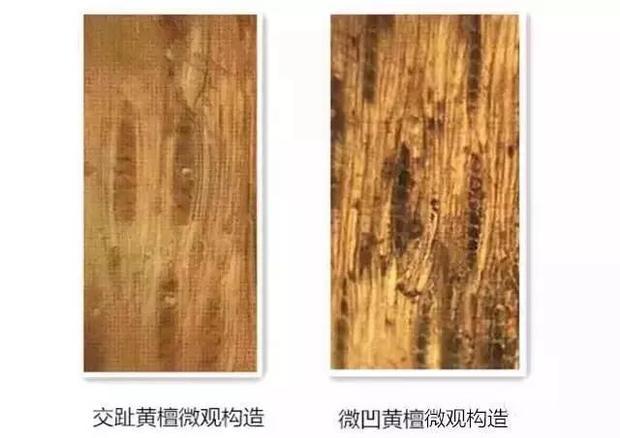 ⑥气味——二者均有气味,但交趾黄檀为酸香气,而微凹黄檀为辛辣味;